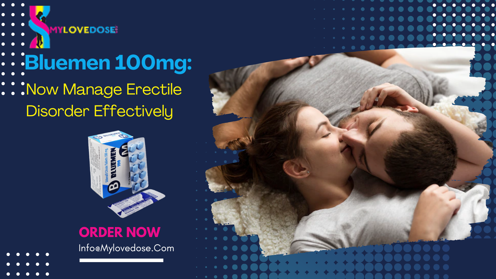 Erectile illness is a state where men have trouble in attaining an erection, maintaining an erection, or witness a lack of sensual longing. Also recognized as impotence, Erectile illness is a subject of conversation many men are not comfy with. In fact, only 33 percent of those who suffer from ED look for management, which leaves a staggering 64 percent on the sidelines as they just try to deal with it. Buy Bluemen 100mg tablets online from mylovedose helps you rejuvenate your sensual life with a revolutionary new erectile disorder treatment. Containing the active ingredient Sildenafil Citrate 100 mg, patients can know-how a healthy erection and more control over the length of contact.